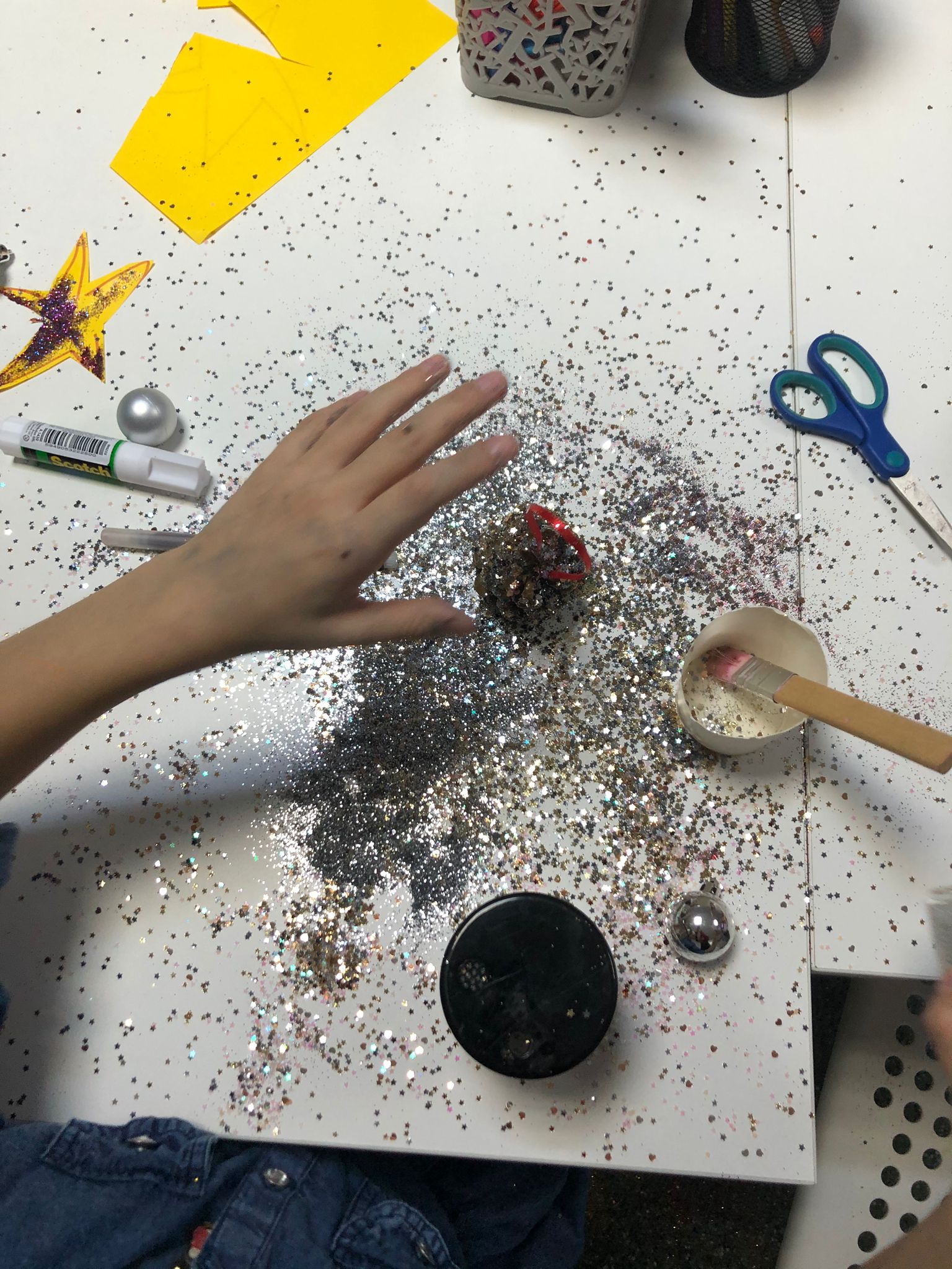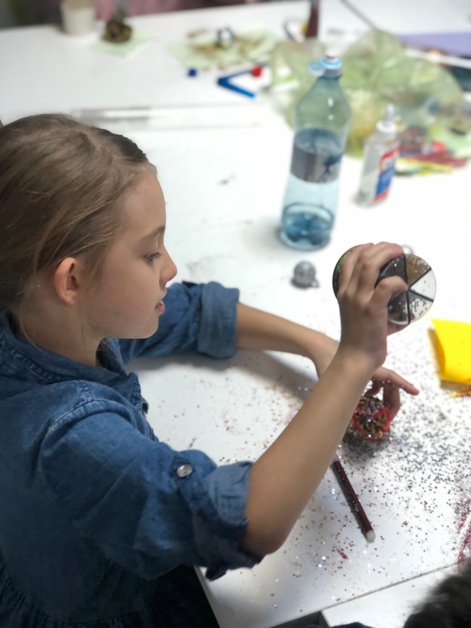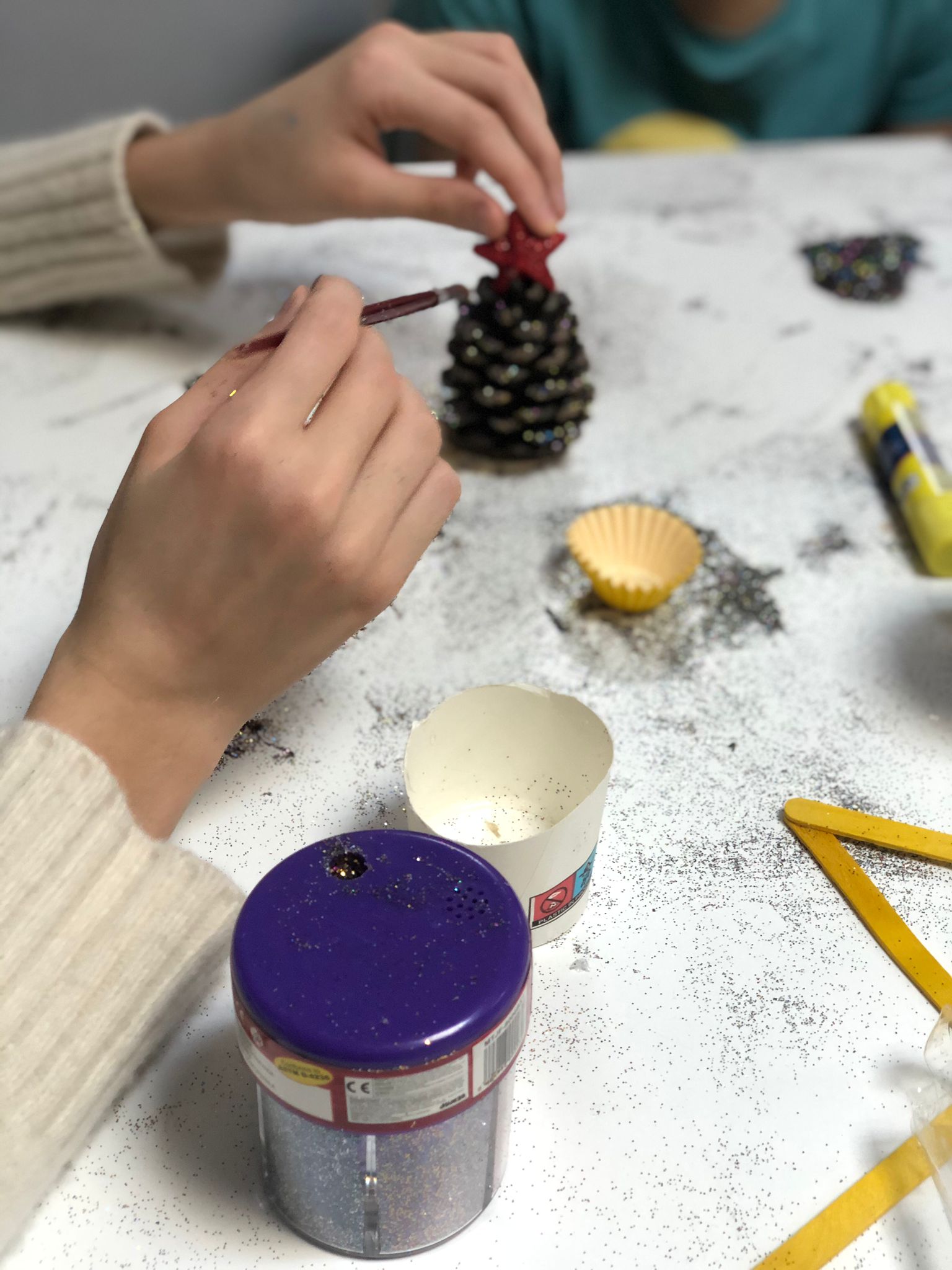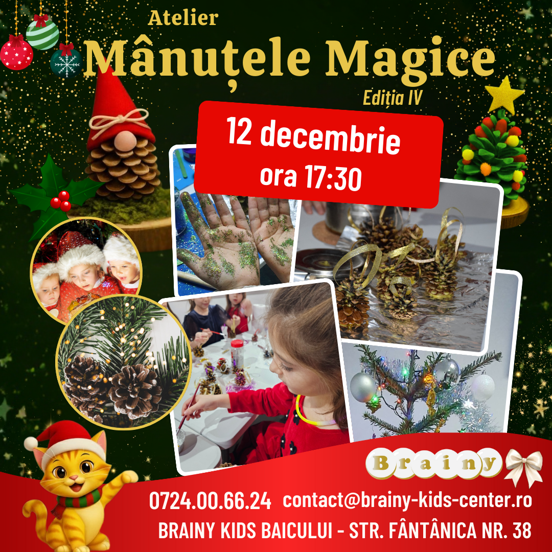 La atelierul Mânuțele Magice, cei mici transformă conuri de brad, materiale naturale și sclipici în adevărate decorațiuni de poveste. Atelierul este gândit pentru a stimula creativitatea, autonomia și bucuria de a crea obiecte cu propriile mâini.